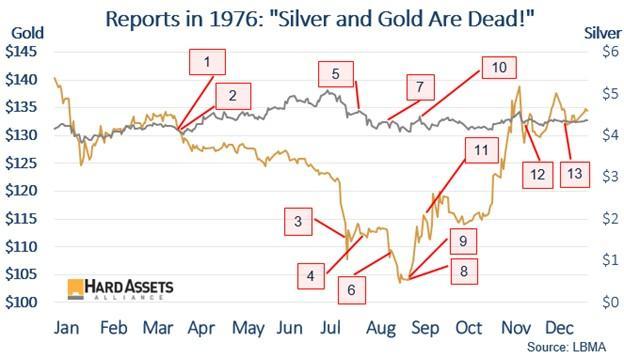The 1970s gold bull market was full of violent pullbacks that convinced observers the rally was over.